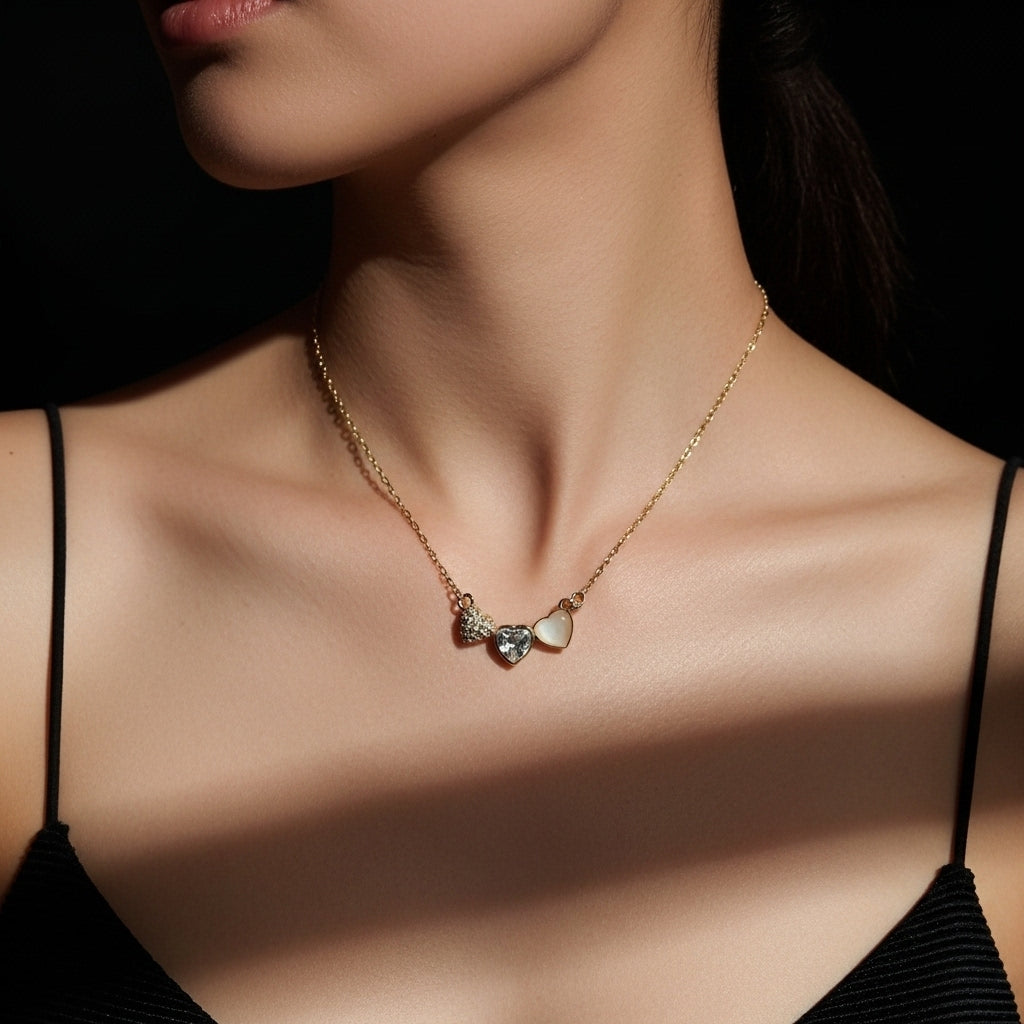 This exquisite pendant showcases a majestic design inspired by royal heritage, featuring a triad of hearts symbolizing profound love and connection. Meticulously crafted, it blends elegance with symbolic depth, making it a distinguished piece that reflects both sophistication and meaningful artistry. Ideal for those who appreciate timeless beauty with a narrative of heartfelt significance.